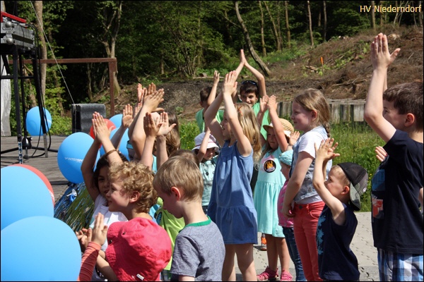Viele Kinder, Eltern und sogar Großeltern hatten am Sonntag den Weg zur Grillhütte in Niederndorf gefunden, um sich das Konzert der Kinder-Rock-Band „Pelemele“ anzuhören.